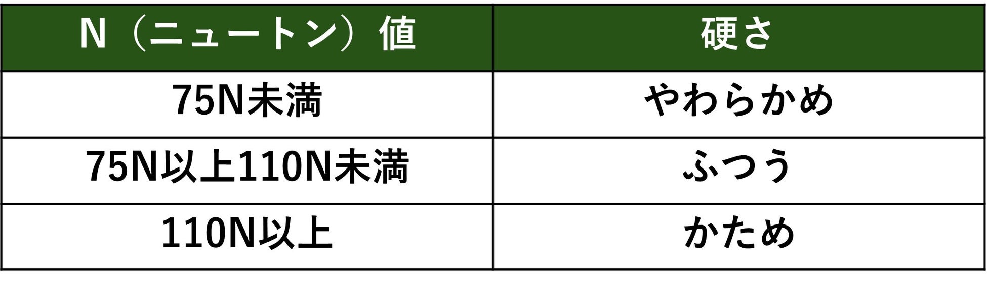 『硬さ』と『反発力』の認識の違いは表を参考にしてください。反発弾性率はほとんどのメーカーで記載されていないため、気になる方は問い合わせてみましょう。