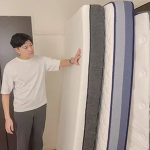 この詰め物は、薄すぎても分厚すぎても良くありません。薄すぎる場合、ばねの感触が出てきて寝心地が良くありません。反対に分厚すぎる場合は、コイルの恩恵を受けにくくウレタンマットレスに近い寝心地になってしまいます。詰め物の厚みは5〜8cm程度が、ばね感の軽減、熱のこもりにくさを両立してくれておすすめです。