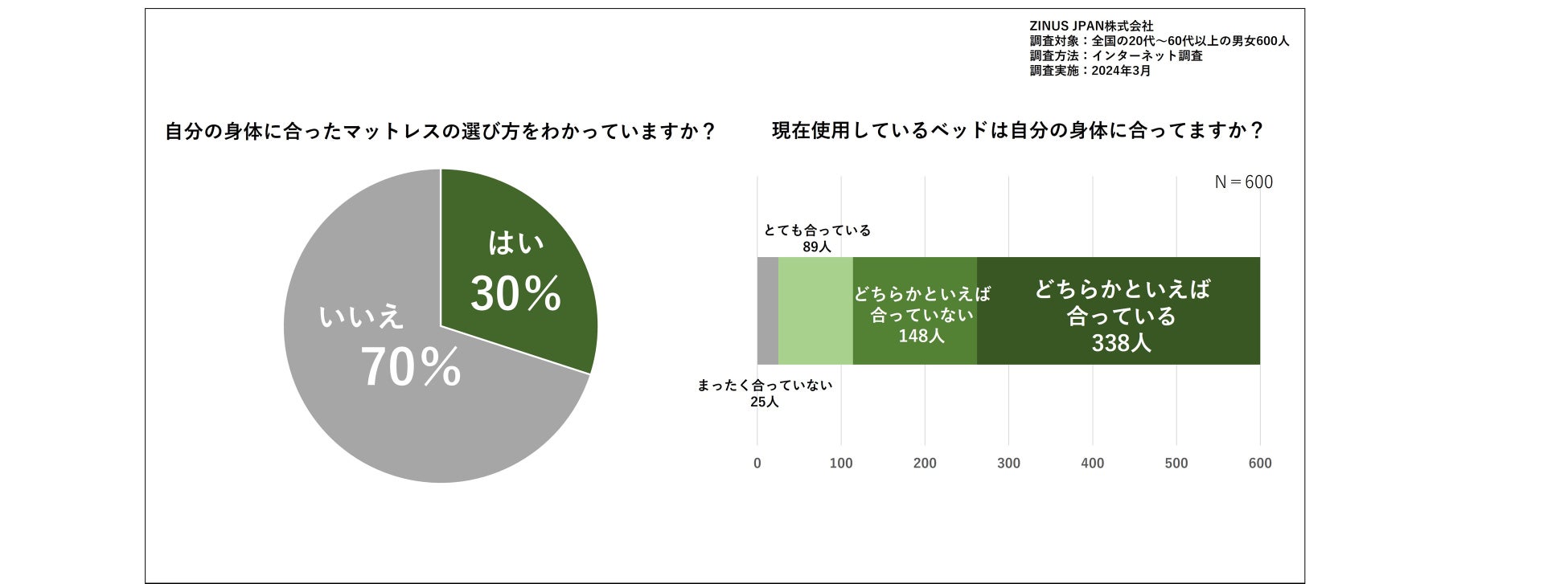 ZINUSでは3月15日の「世界睡眠デー」に向け全国の20代~60代の男女600名を対象に現在使用しているベッドマットレスに関する調査を実施しました。