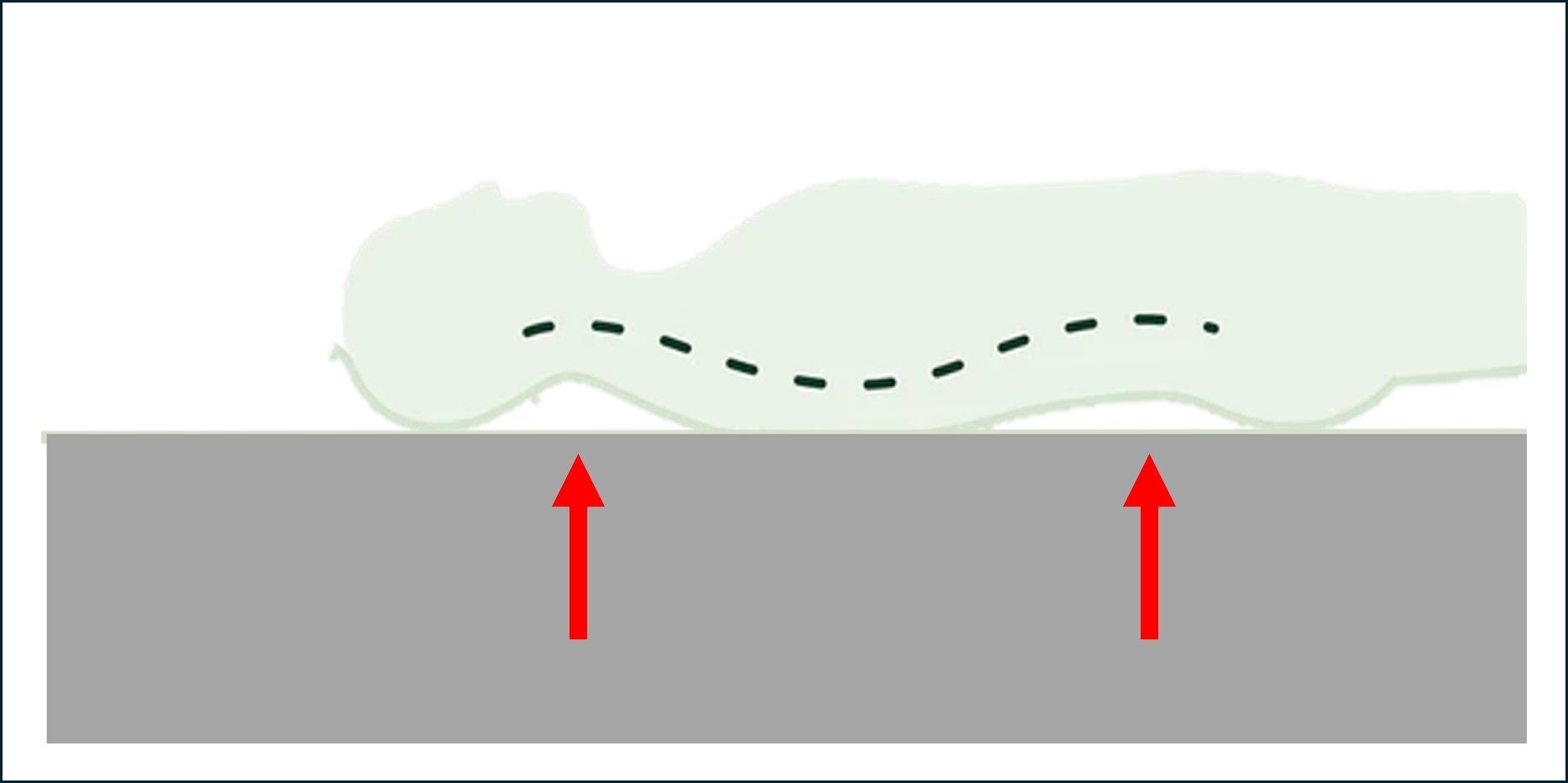 ↑ 極端に硬いマットレスなので、頚部、背部腰が浮いている。