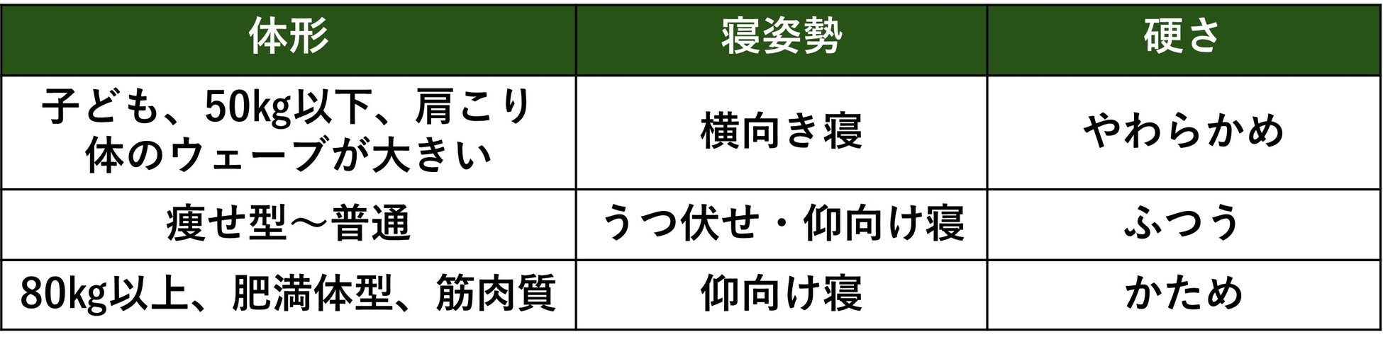 ・体重45㎏以下の人 ・横向きに寝がちな人