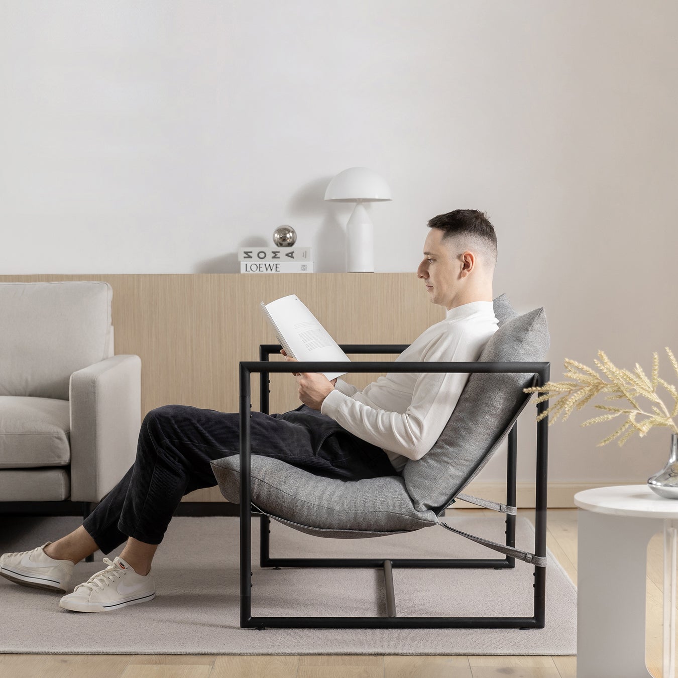 座面であぐらもでき、ソファチェアとして、日常のリラックスを演出します。