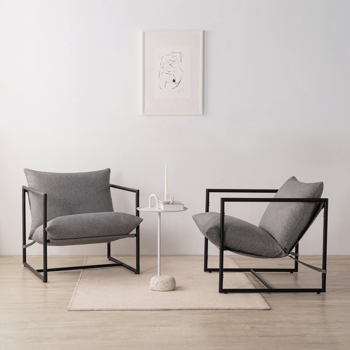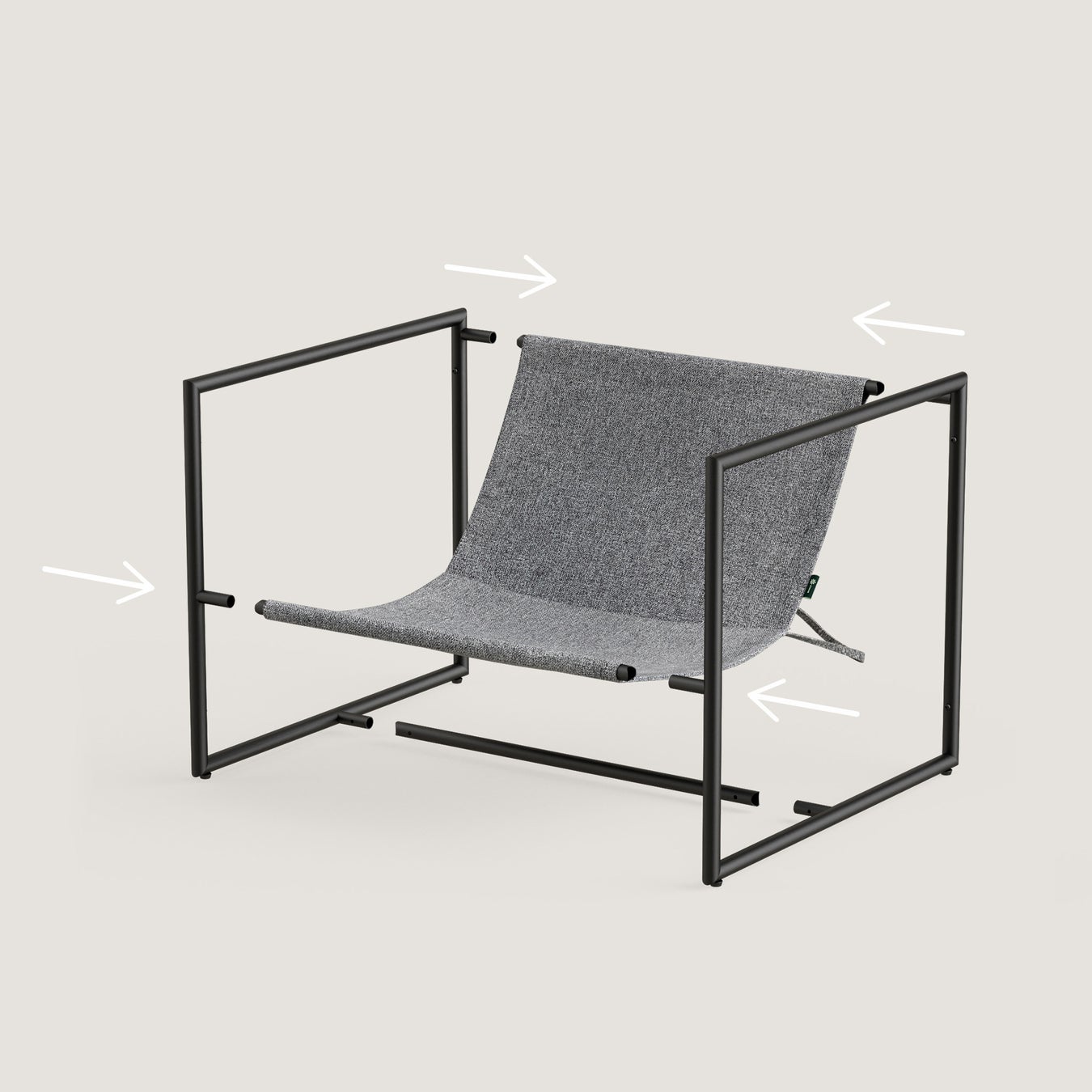 AIDAN LOUNGE CHAIRは、頑丈なスチールフレームに布を配し、クッションを組みわせた、余計なものを省いたシンプル&モダンなデザイン。